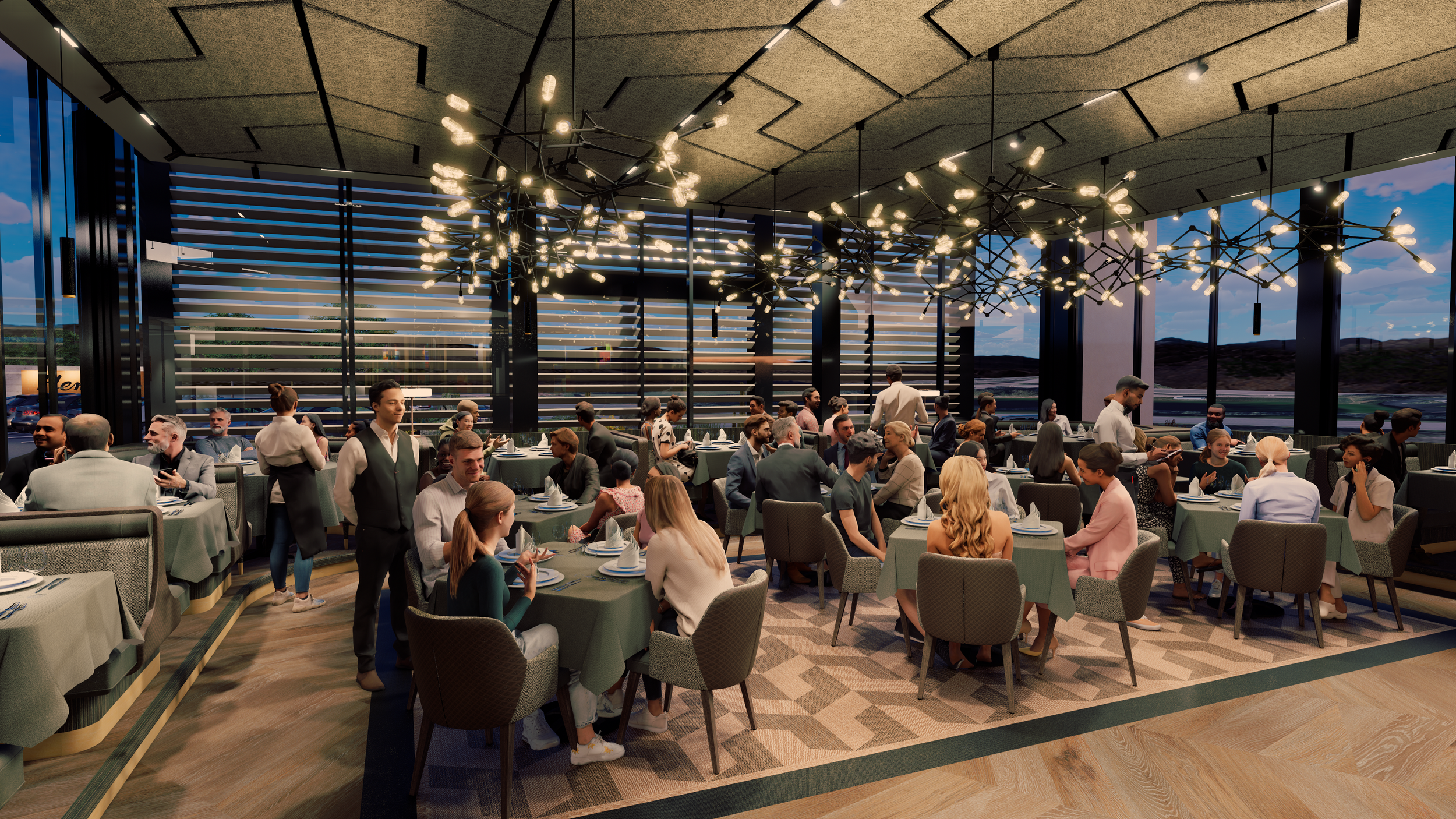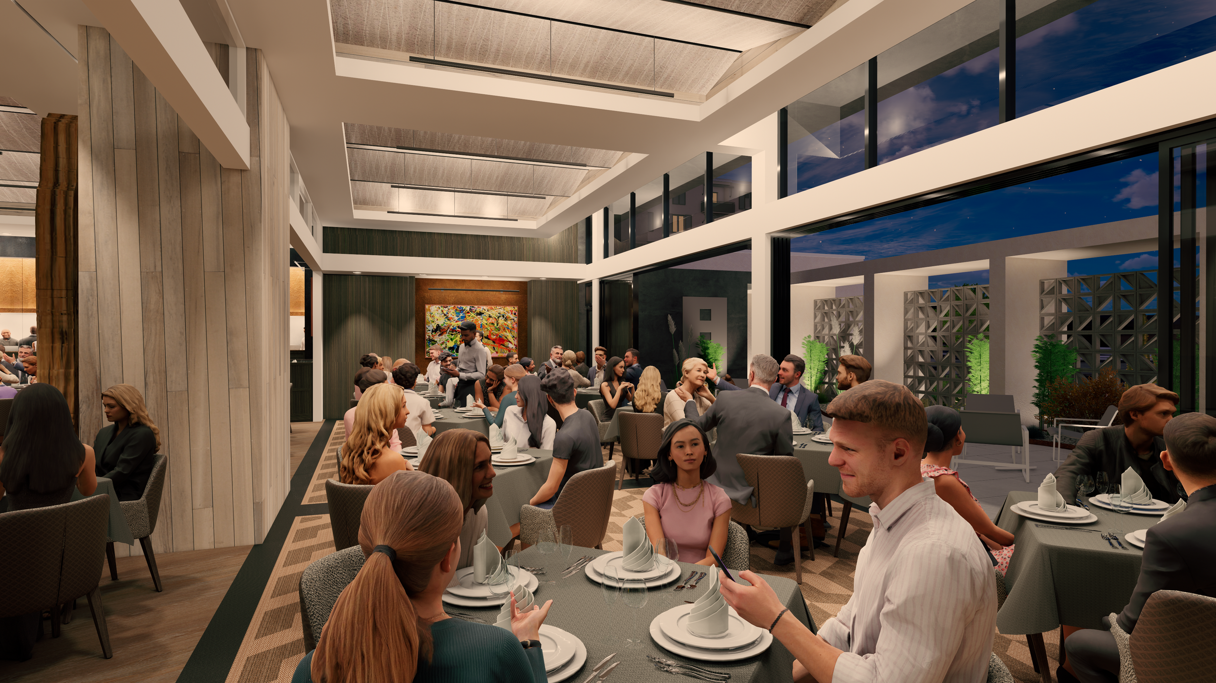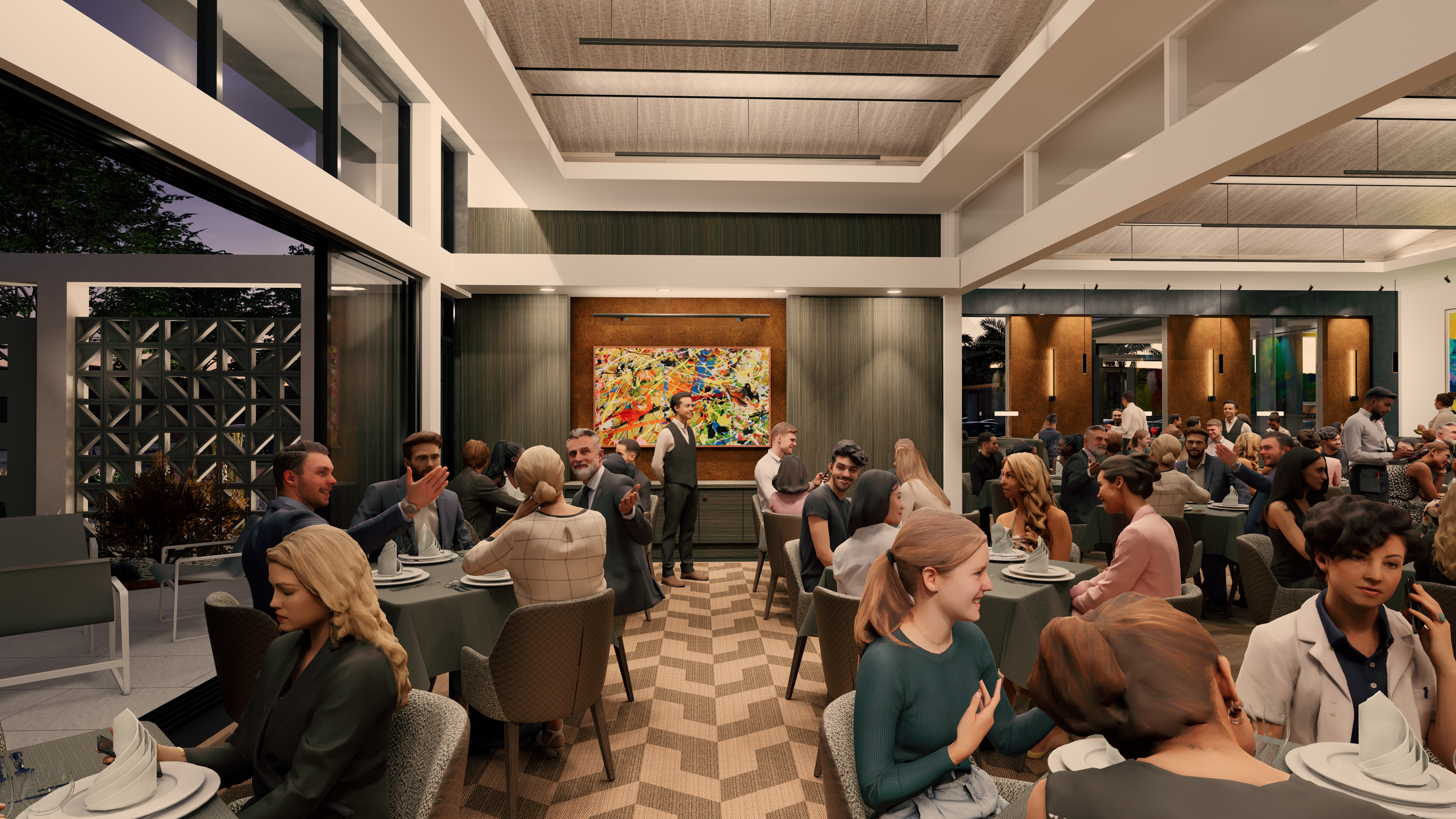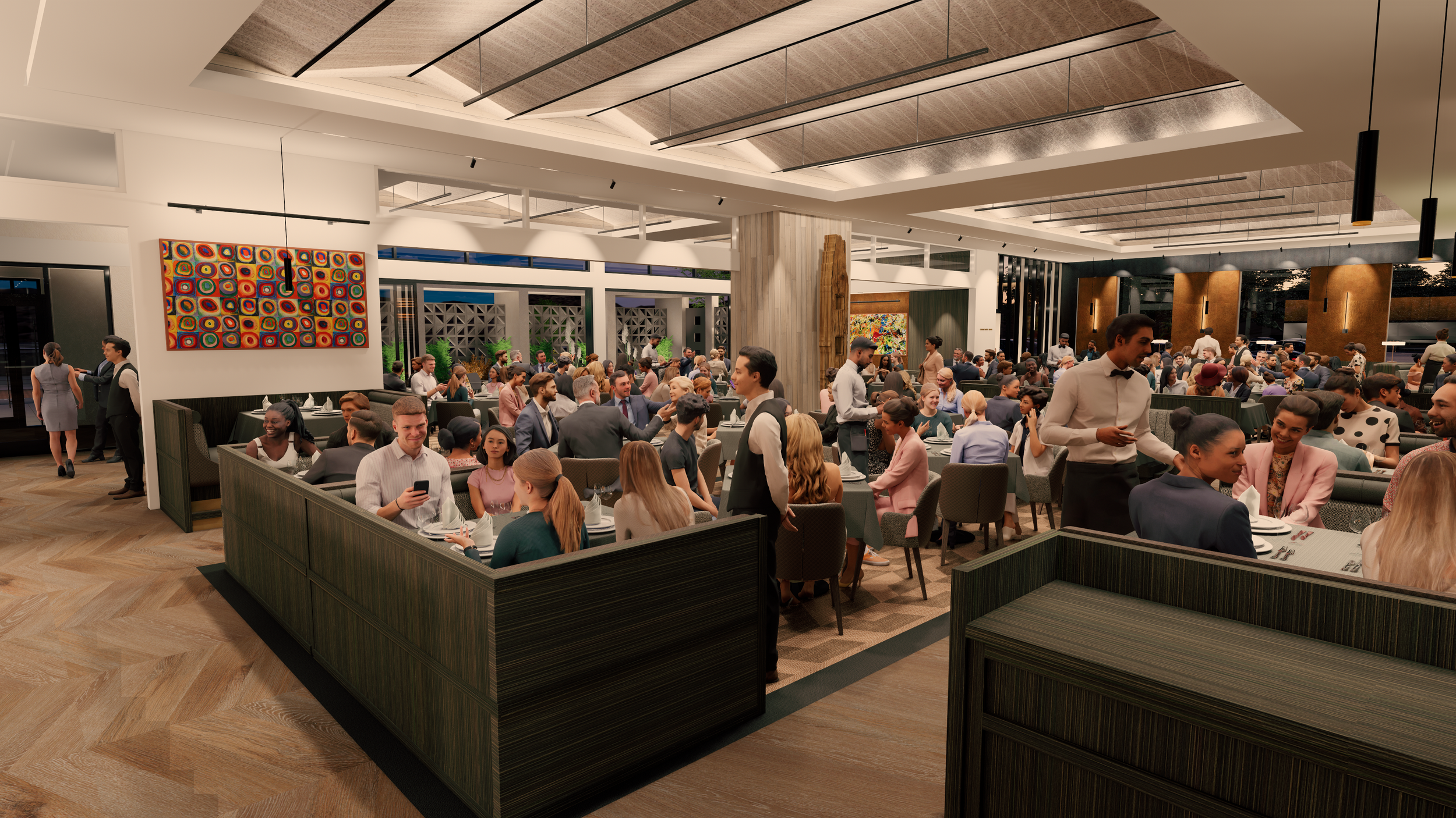 At fleming's, california's elegance is evident in every detail. Step inside to a blend of wood, concrete, and warm colors—brown, orange, yellow—creating a welcoming and luxurious atmosphere. The design is both visually stunning and practical, offering a lasting, inviting experience that transforms dining into a cherished moment.