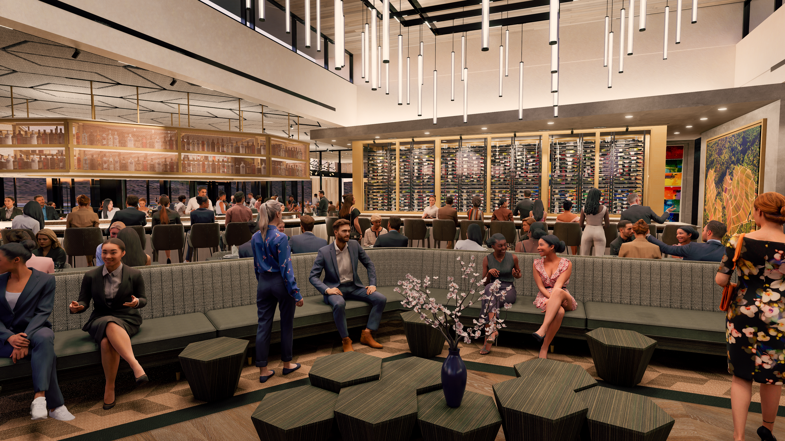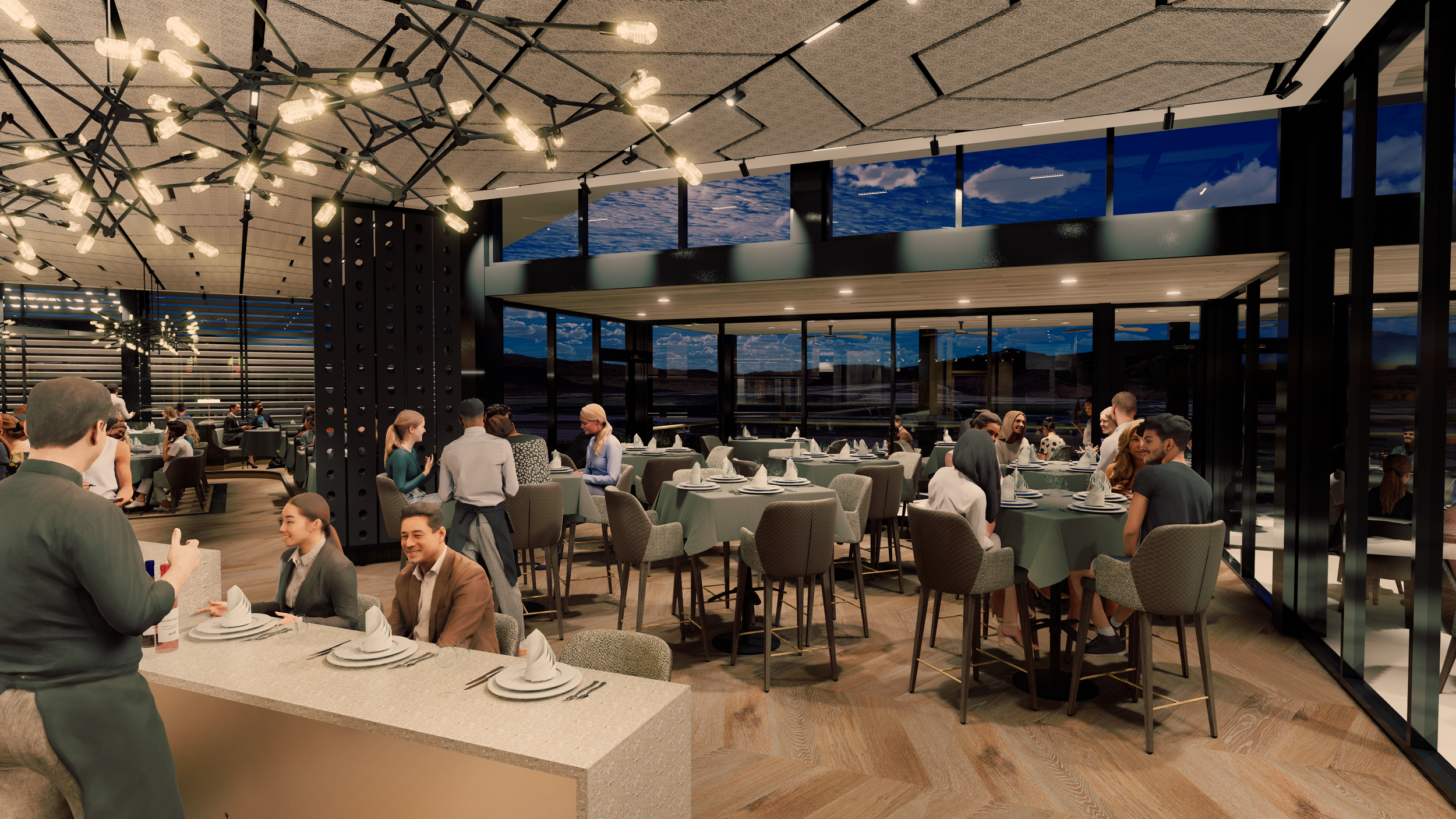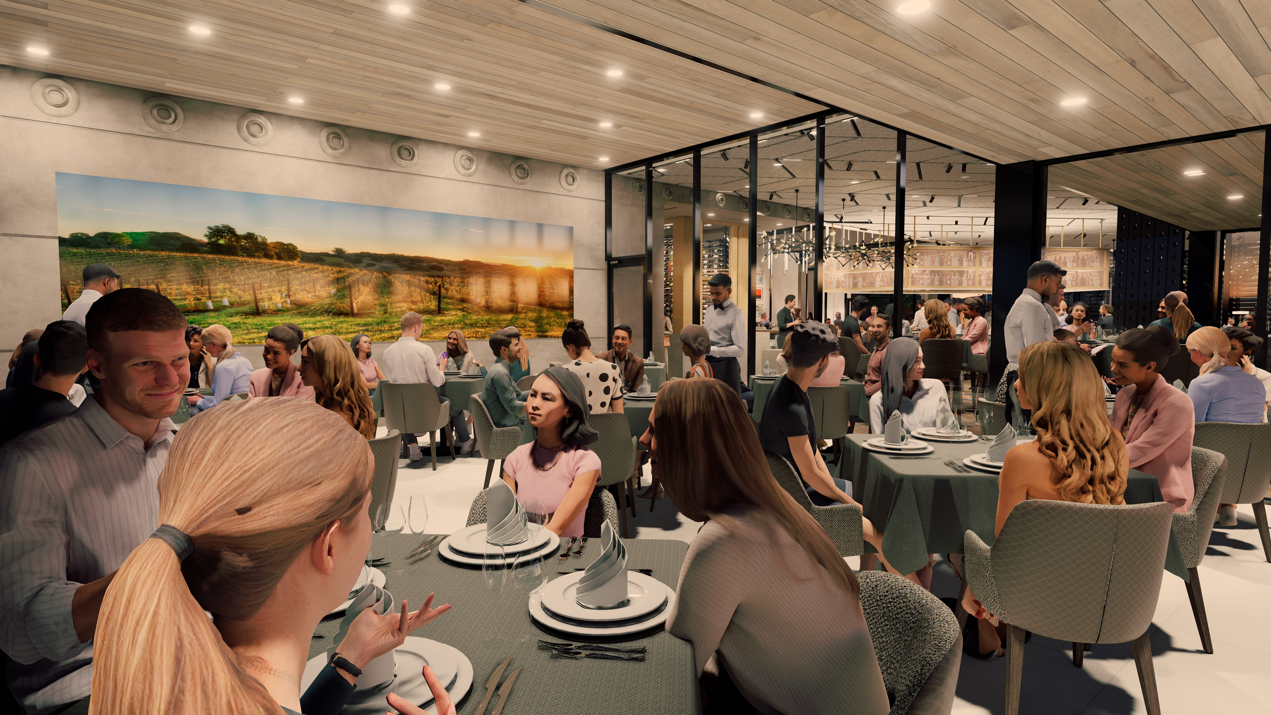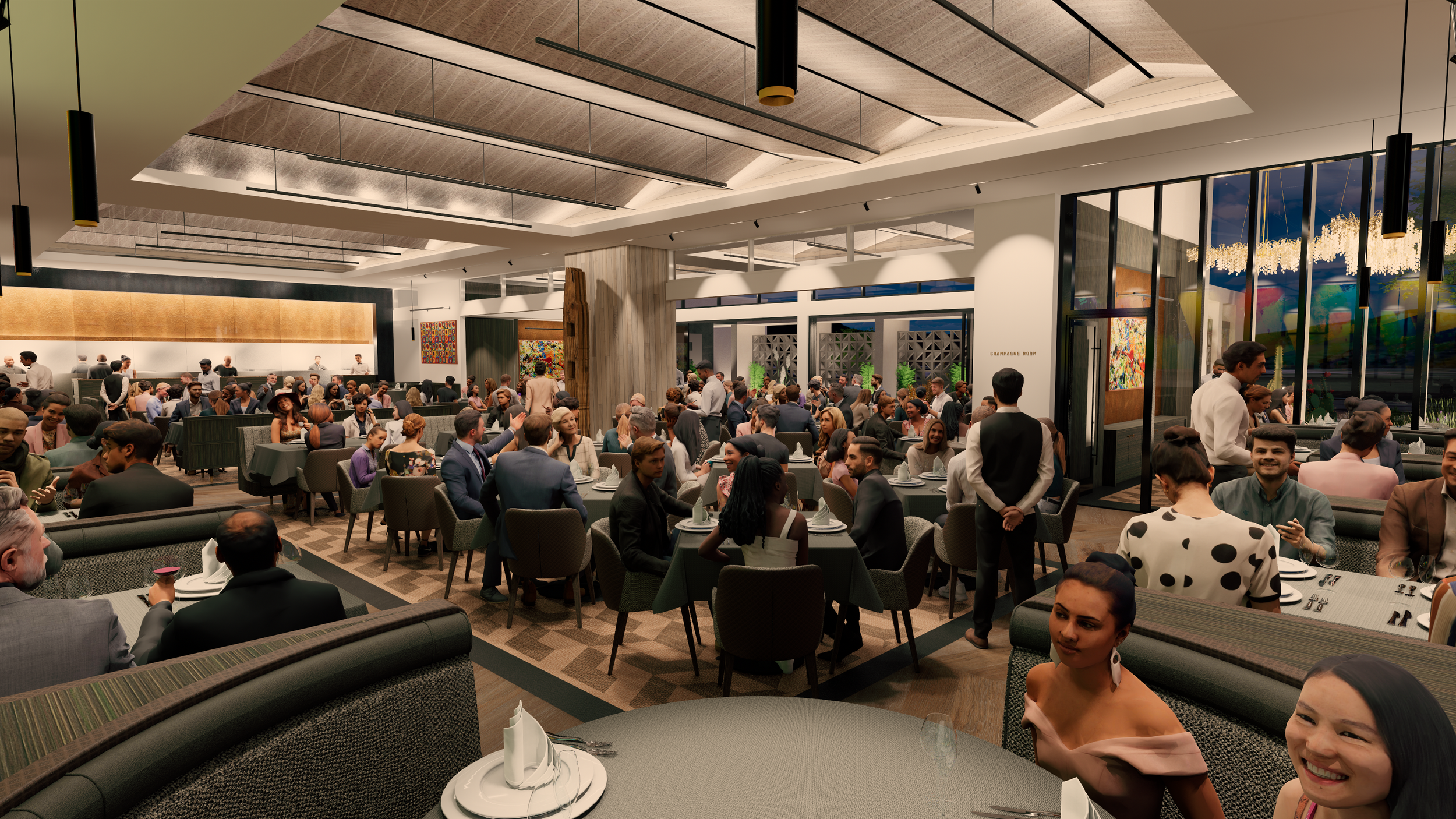 At fleming's, california's elegance is evident in every detail. Step inside to a blend of wood, concrete, and warm colors—brown, orange, yellow—creating a welcoming and luxurious atmosphere. The design is both visually stunning and practical, offering a lasting, inviting experience that transforms dining into a cherished moment.