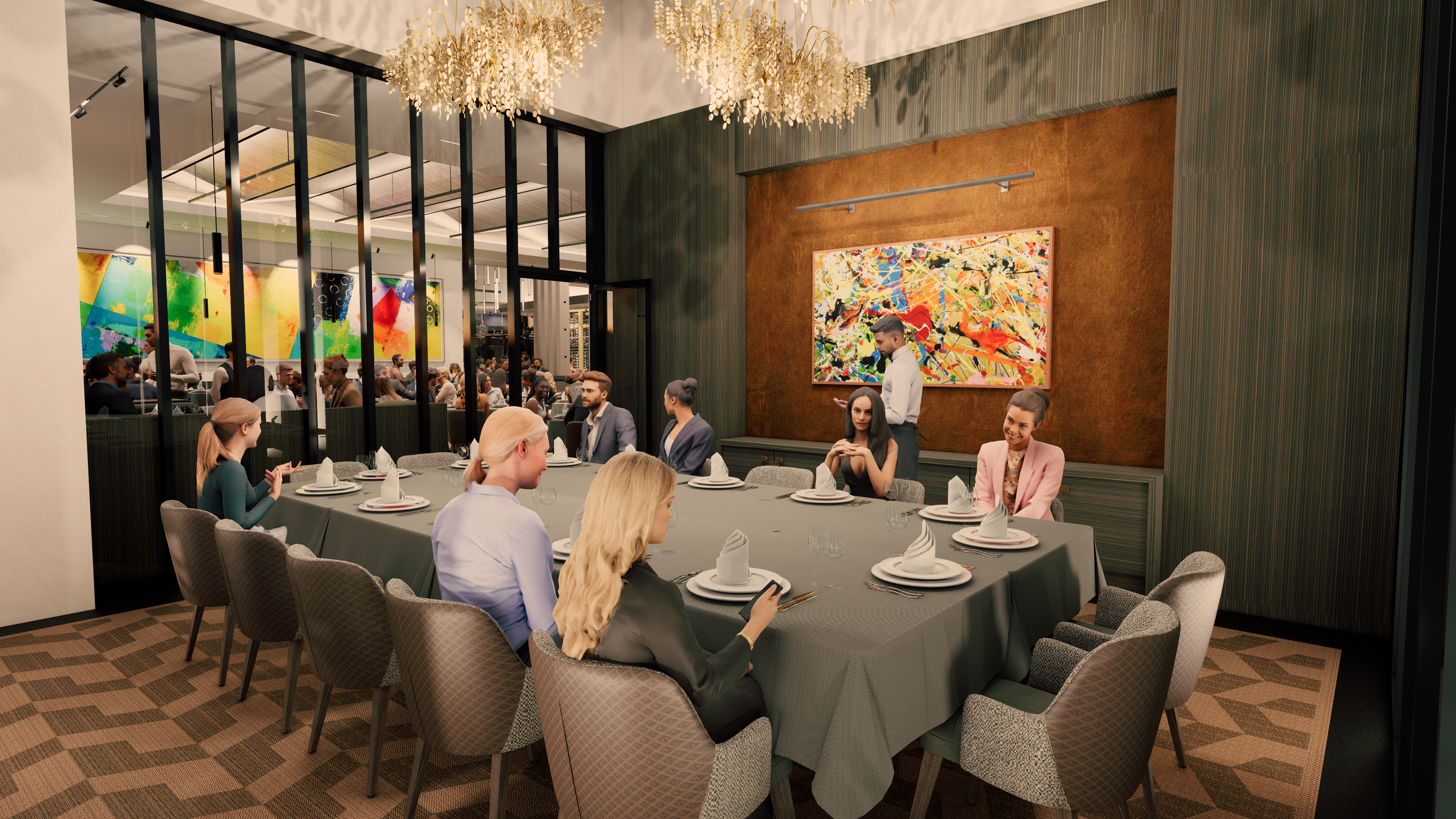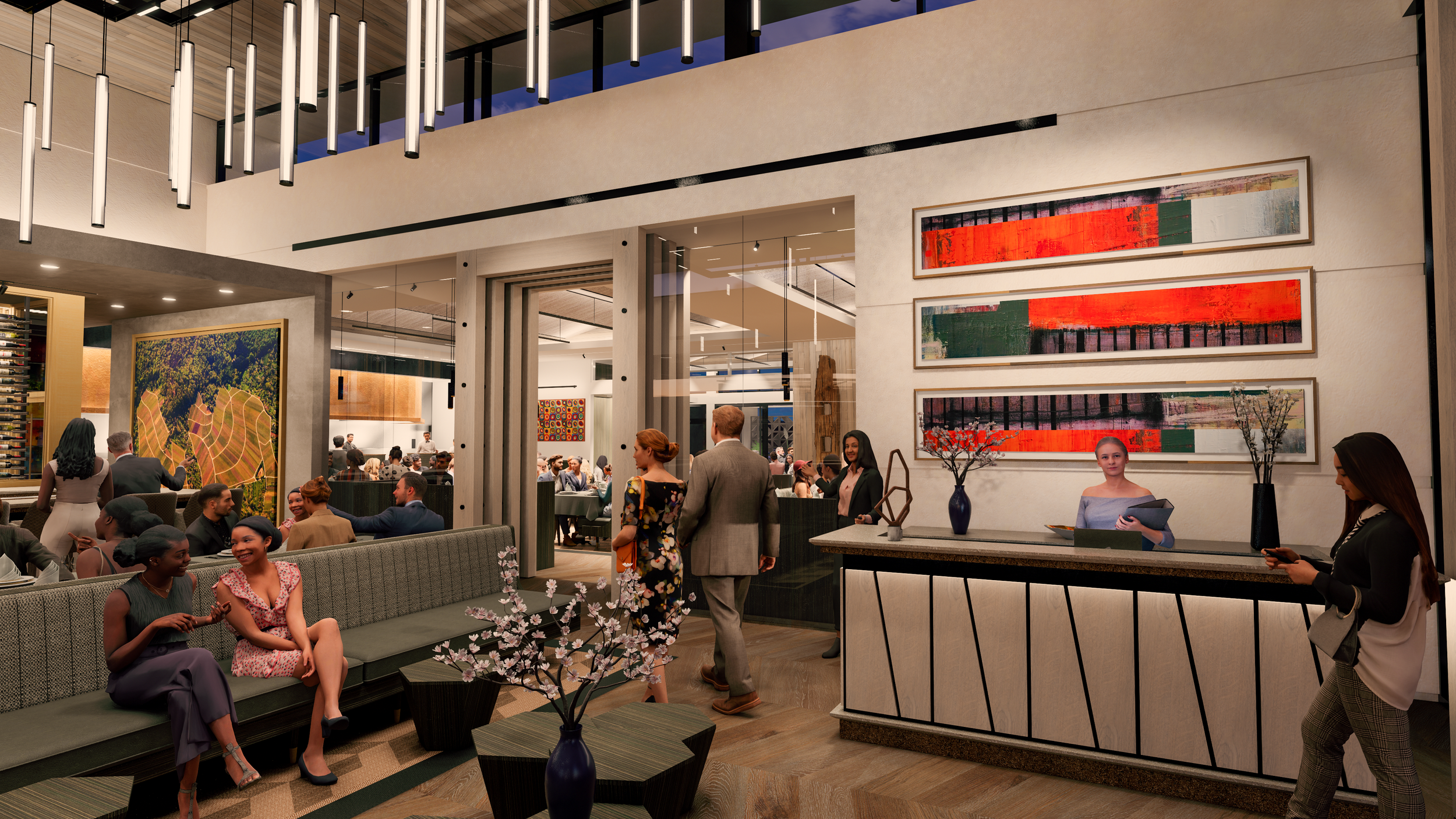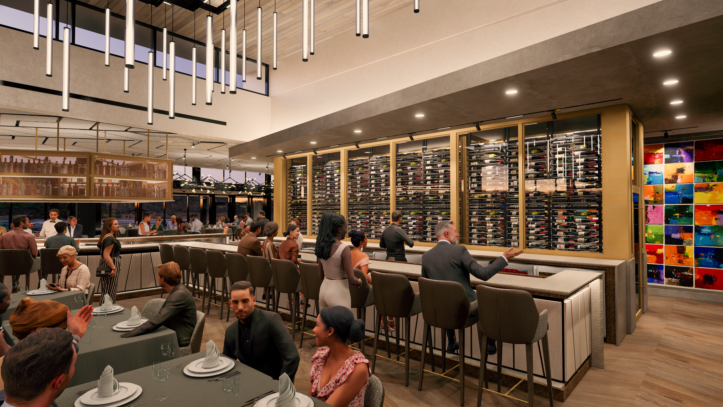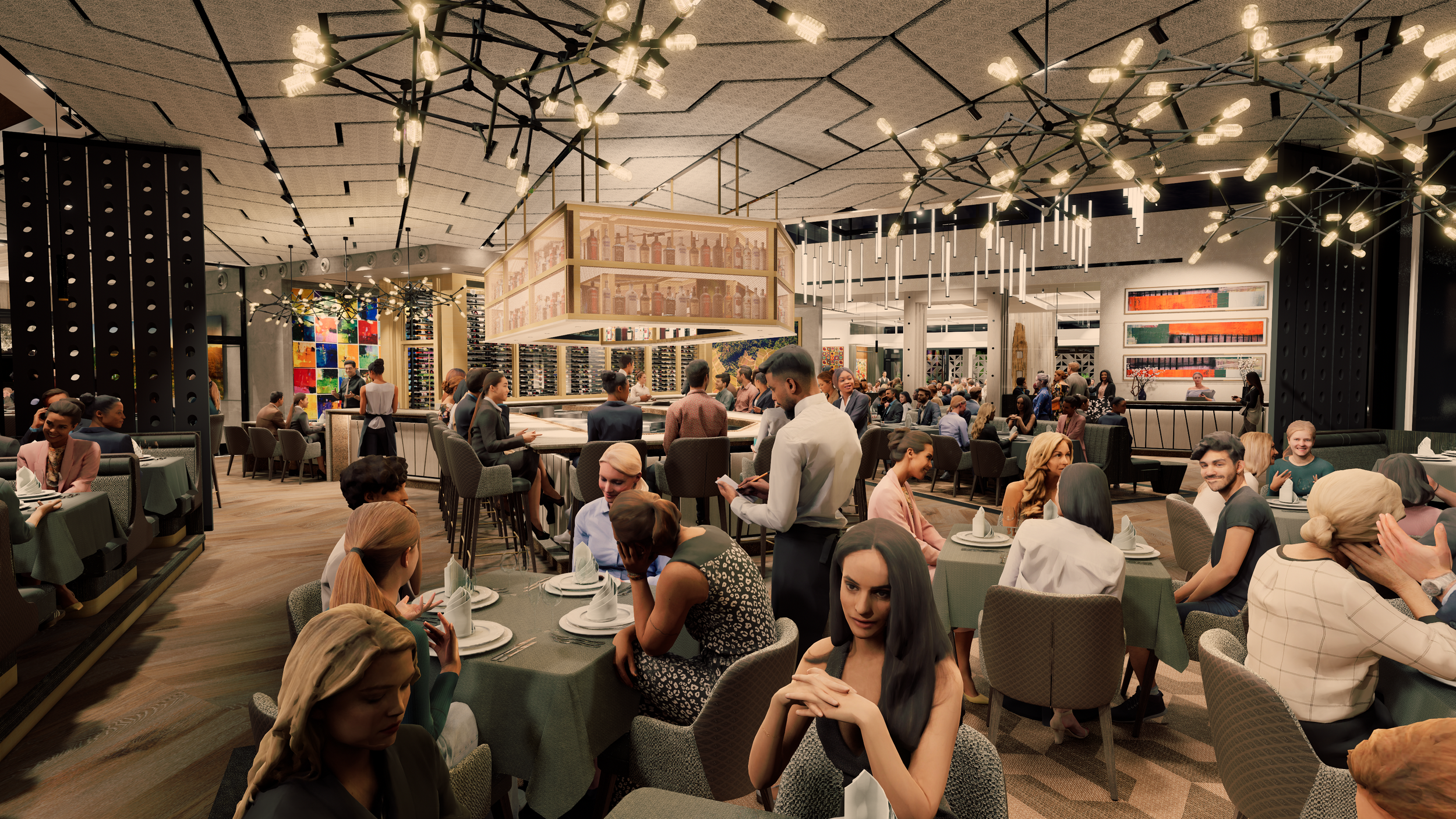 At fleming's, california's elegance is evident in every detail. Step inside to a blend of wood, concrete, and warm colors—brown, orange, yellow—creating a welcoming and luxurious atmosphere. The design is both visually stunning and practical, offering a lasting, inviting experience that transforms dining into a cherished moment.